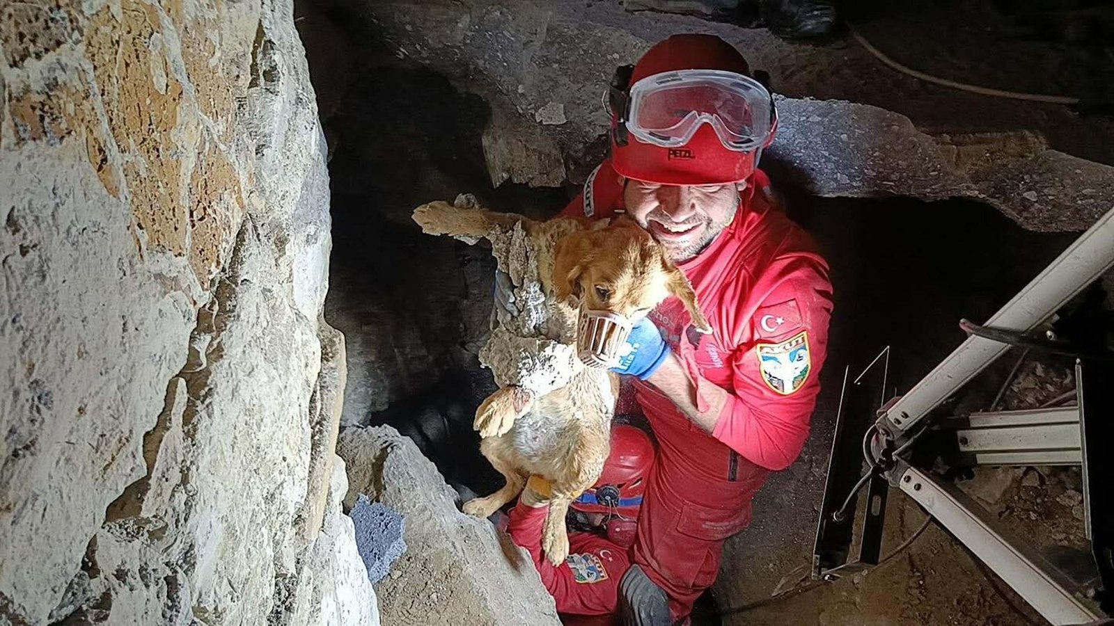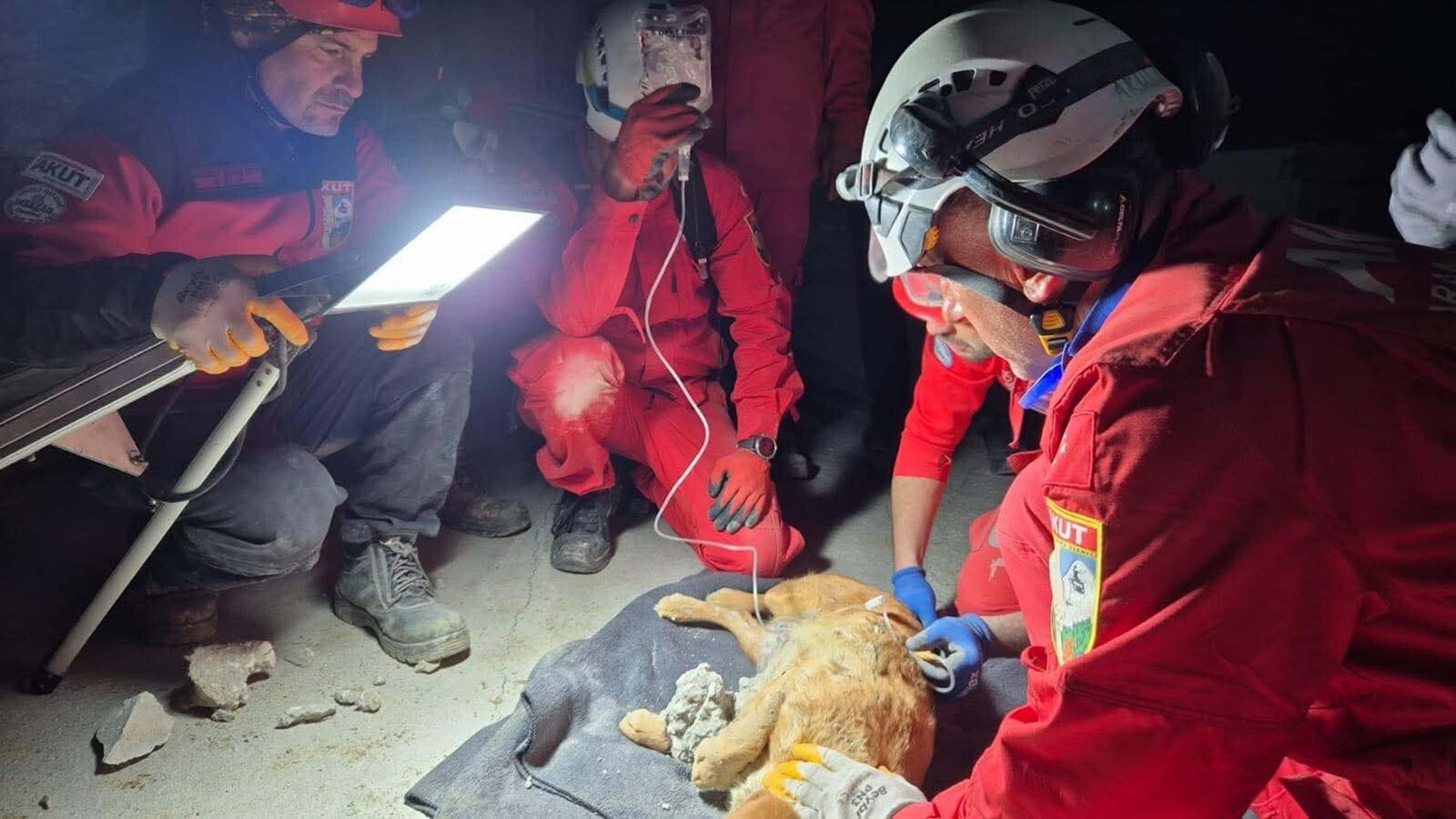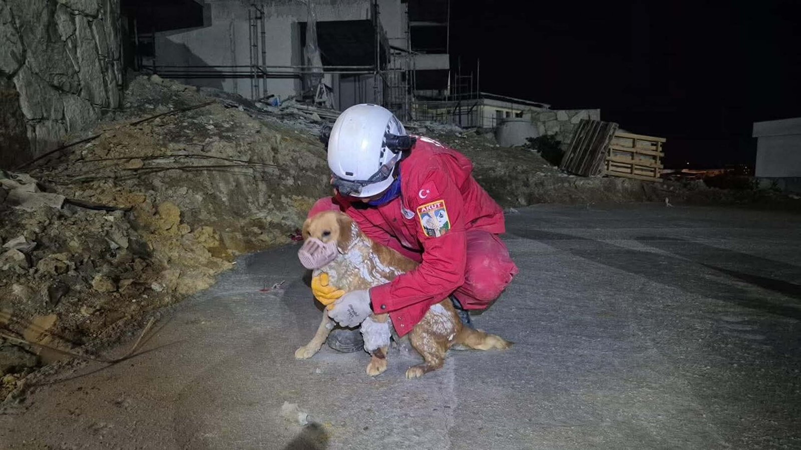 Oğuzhan BOYSAN/KUŞADASI (Aydın), (DHA)-AYDIN’ın Kuşadası ilçesinde inşaat sahasına dökülüp, kuruyan betonda mahsur kalan ‘Paris’ isimli köpek, itfaiye ve Arama Kurtarma Derneği (AKUT) ekiplerince 7 saat süren çalışma ile kurtarıldı.