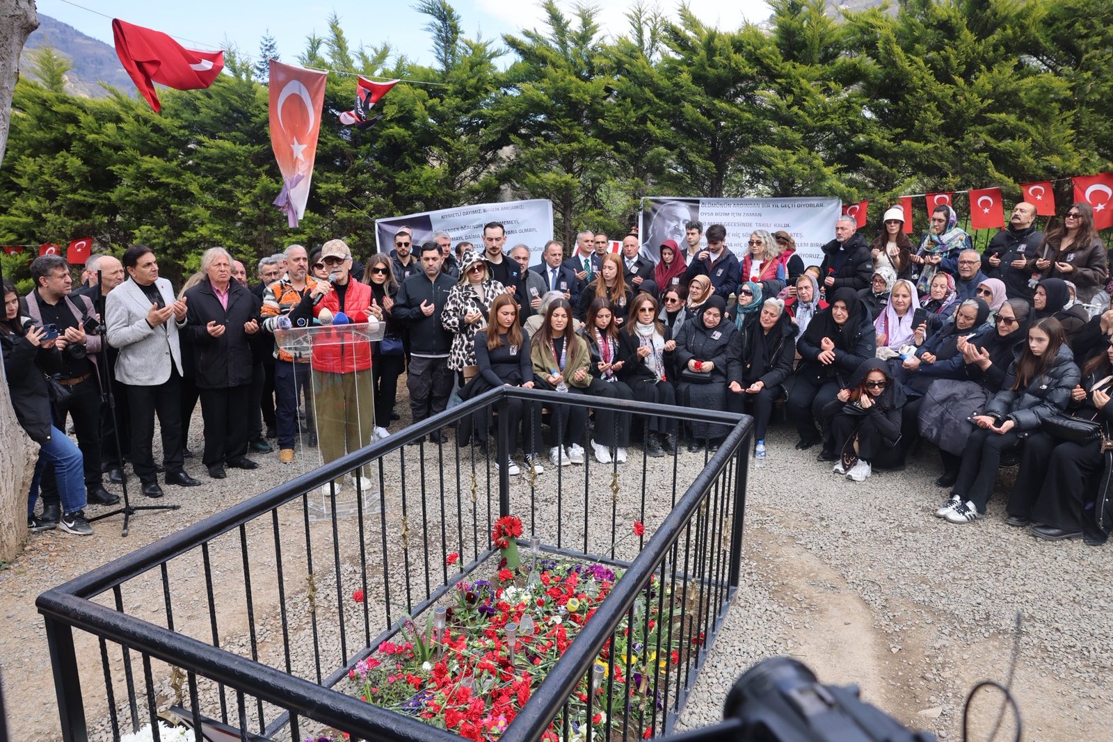 Konak’ın yeğeni Özlem Yolsal da “Dayımın vefatının 1’inci yıl dönümü anma programına katılarak her biriniz bugüne büyük bir anlam, büyük bir değer kazandırdınız. Dile kolay, yaşaması zor koca bir yılı geride bıraktık. Bu süreçte zaman, bazen anlamını yitirdi. Dayımı uzun zamandır görmüyormuşuz gibi özledik; acısını ise onu daha demin kaybetmişiz gibi içimizde taşıdık. Kabul etmek gerçekten çok zor. Dünya güneşin etrafındaki döngüsünü tamamlarken dayım yoktu. Mevsimler değişirken dayım yoktu. Çiçekler açarken, yapraklar dökülürken, kuşlar göç ederken dayım yoktu. Hem de daha yavrularının büyüdüğünü göremeden, son bestesini yapamadan, hikayesinin sonuna gelmeden aramızdan zamansızca ayrılışını kabullenmek gerçekten çok zor. Dayım yaşarken bizlere çok şey öğretti; dik durmamız gerektiğini, pes etmememiz gerektiğini, acısıyla şimdi ise yokluğuyla, bu derin acıyla nasıl baş edebileceğimizi öğretiyor. Ah benim dayım. Şimdi burada, o meşhur ceviz ağacının altındaki masasının etrafında toplandık. Birlikteyiz, beraberiz, onun istediği gibi. İyi ki bizim dayımız oldun, iyi ki bizim kardeşimiz, iyi ki yoldaşımız oldun. İyi ki geldin geçtin bu dünyadan, Kuzeyin Oğlu Volkan Konak. Koca yürekli şövalyemiz, seni çok seviyoruz” diye konuştu. (DHA)
