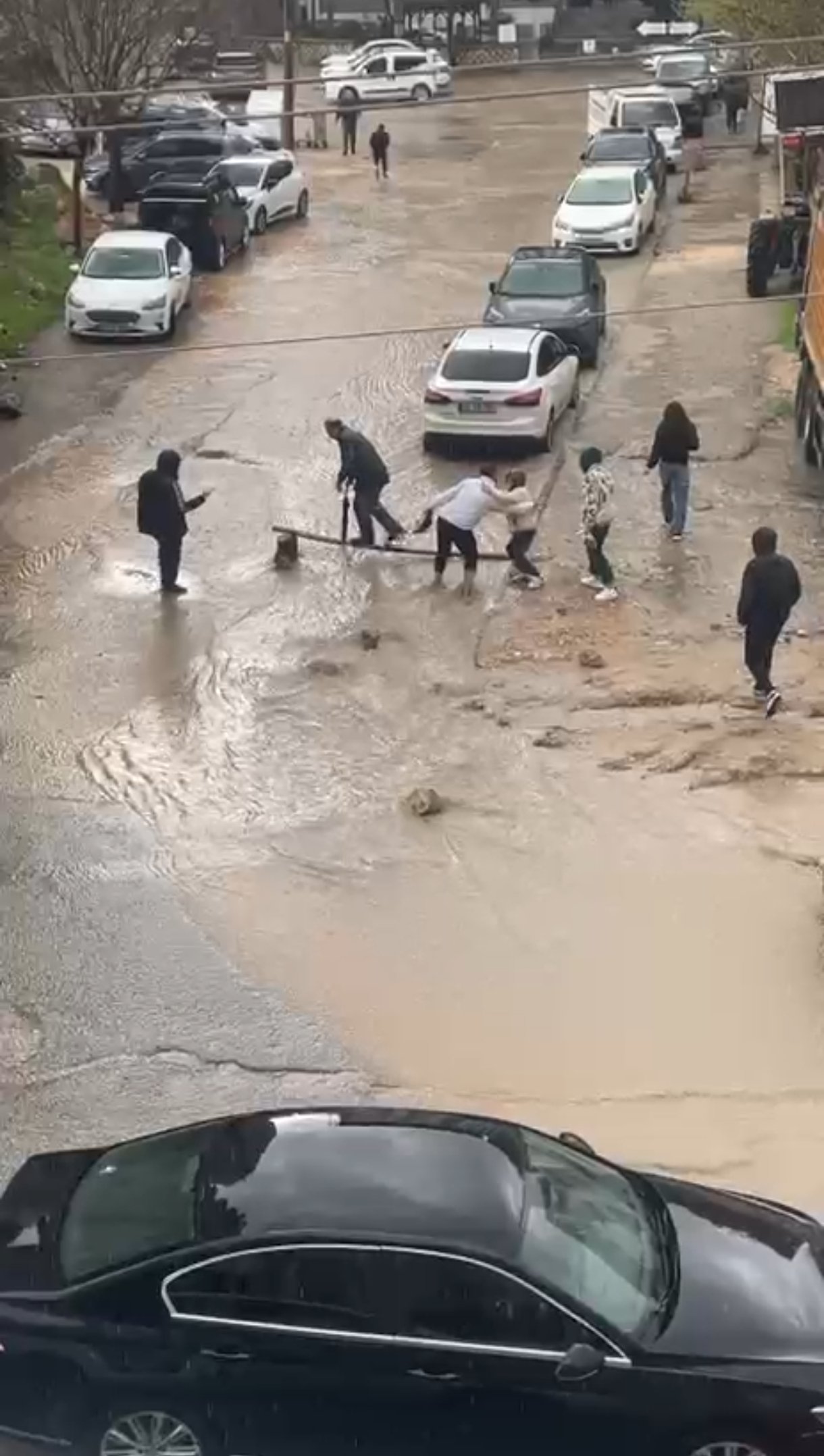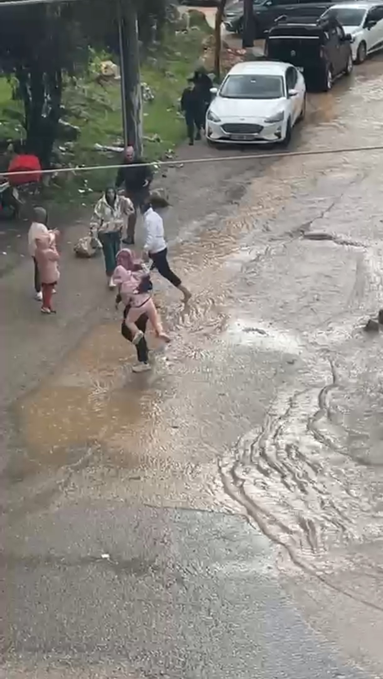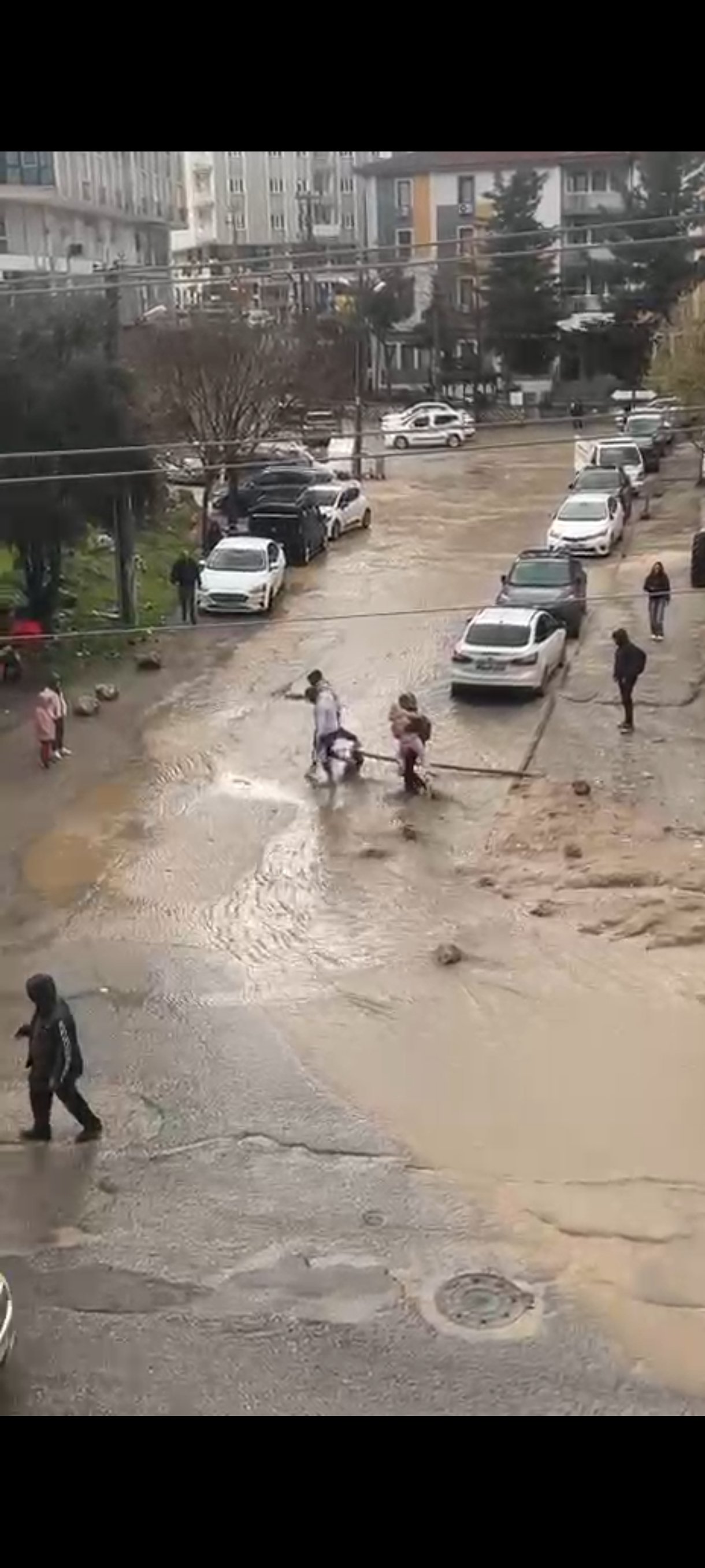 Artuklu ilçesinde akşam saatlerinde etkili olan sağanak nedeniyle birçok cadde ve sokak suyla doldu. Araçlar suyla kaplanan yollarda ilerlemekte zorlanırken, yayalar yürümekte güçlük çekti. 13 Mart Mahallesi’nde ise bazı yayalar, karşıya geçmek için yola tahta koyarak üzerinden geçti. O anlar, cep telefonuyla kaydedildi. Görüntülerde, bazı vatandaşların da kucağına aldıkları çocuklarıyla yolun karşısına geçtiği görüldü. (DHA)