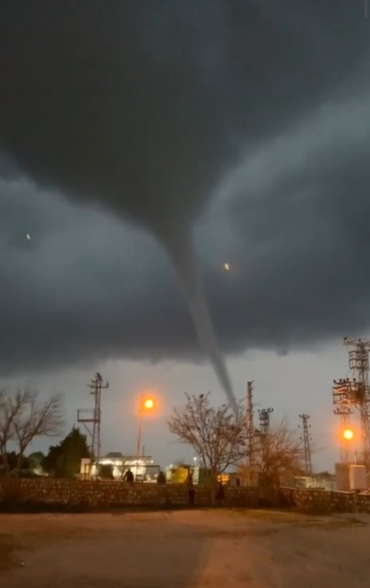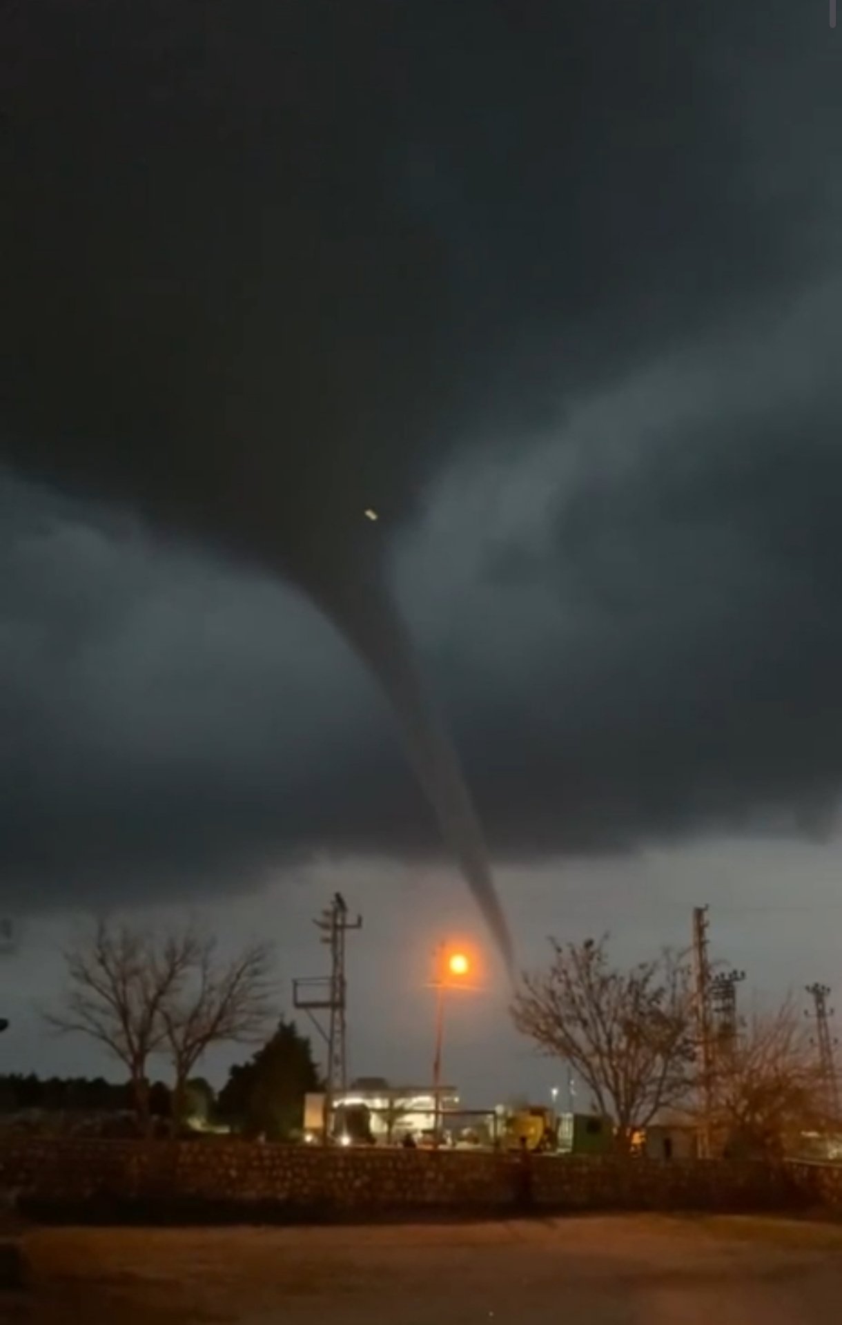 Kızıltepe ilçe merkezinde akşam saatlerinde kısa süreli etkili olan sağanak yağış öncesi hortum çıktı. Hortumun oluştuğu anlar, çevredeki bir kişi tarafından cep telefonu kamerasıyla kaydedildi. (DHA)