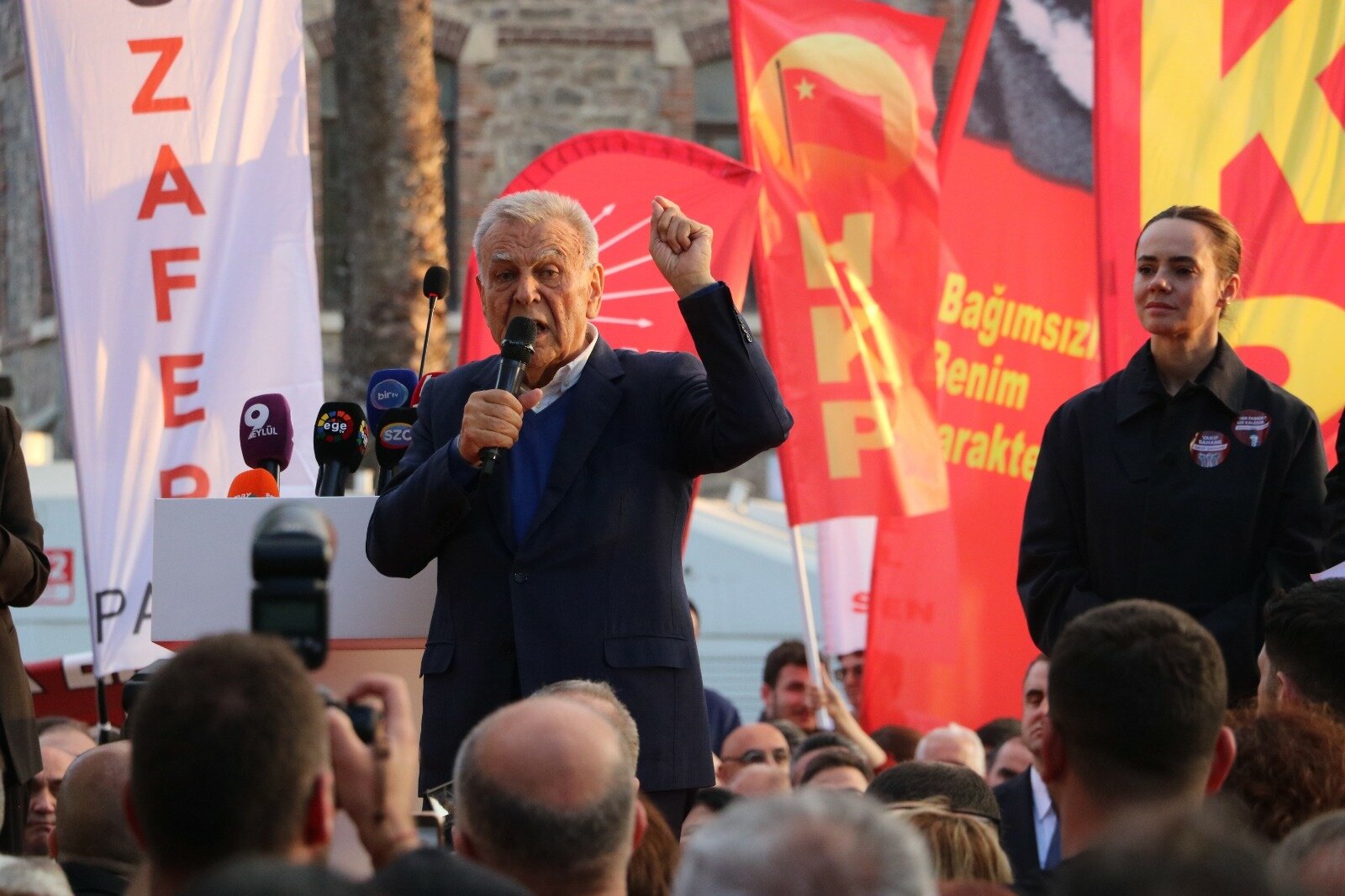 CHP İzmir İl Başkanı Çağatay Güç ise “Biz ayrıştıran değil, birleştireniz. Korkuya karşı cesaretliyiz. İzmir halkıyla inatlaşmayın, cezalandırmayın. Bu şehir boyun eğmez. Meslek Fabrikası İzmir’indir, öyle kalacak” diye konuştu. (DHA)