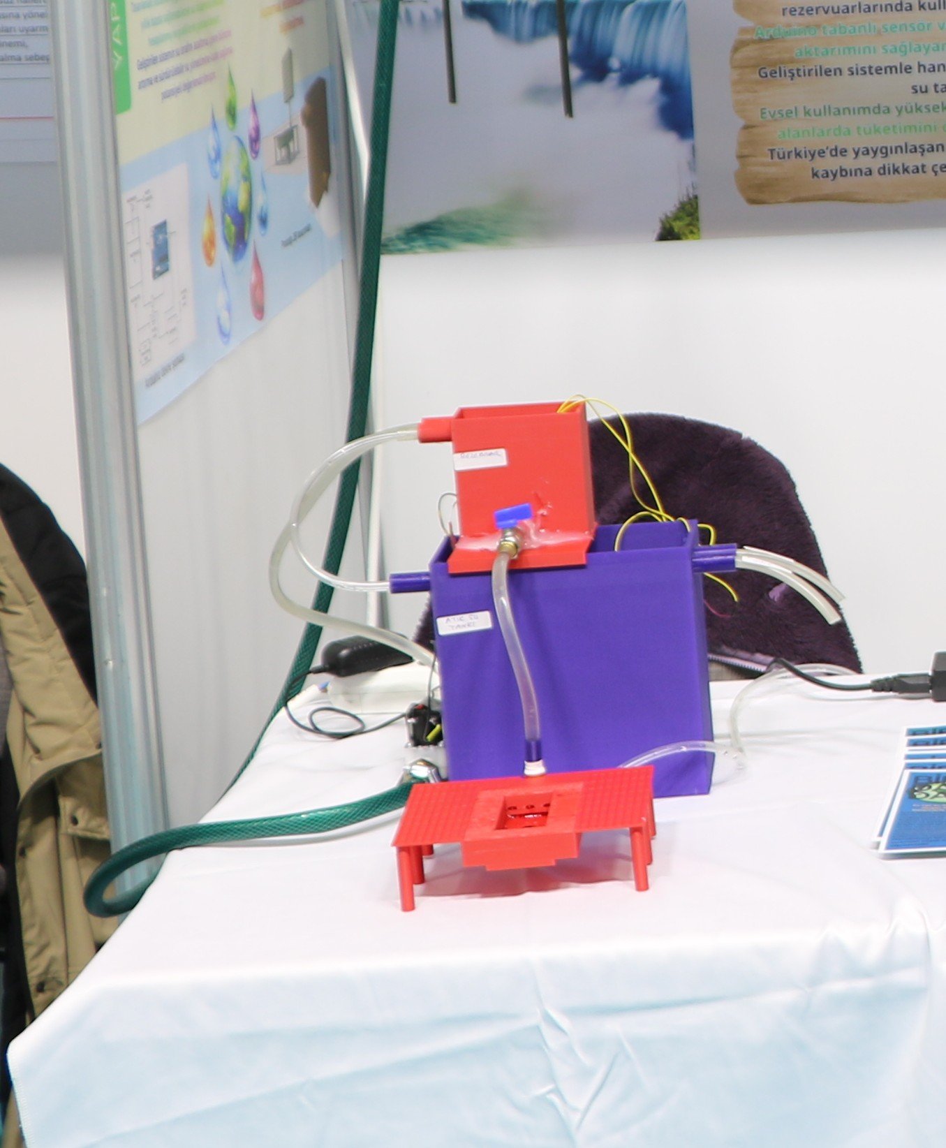 Tokat Erbaa Bilim ve Sanat Merkezi 5’inci sınıf öğrencileri Özlem Gülce Dokuzer ve Öykü Sert, evlerdeki arıtma cihazlarının 1 litre temiz su üretirken ortalama 1,5 litre suyu atık olarak dışarı attığını tespit ederek, oluşan atık suyun akıllı sistemlerle yeniden kullanımı projesiyle TÜBİTAK sergisine katıldı. Projede öğrenciler, evlerde kullanılan su arıtma cihazlarından çıkan atık suyu akıllı bir depolama ve dağıtım sistemi tasarladı.