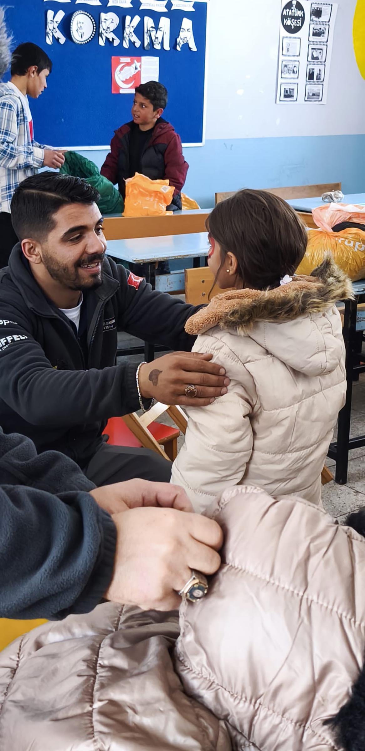 Macera Off-Road Kulübü üyeleri ve gönüllü öğrenciler, 2 saatten fazla süren zorlu yolculuğun ardından Yuvaklı İlkokulu’na ulaştı. Okulda toplanan öğrencilerle çeşitli aktiviteler yapan gönüllüler, yanlarında getirdikleri giyecek ve kırtasiye malzemelerini teslim etti. Öğrencilere kıyafetlerini kendi elleriyle giydiren ekip, etrafı karla çevrili okulun bahçesinde onlarla kar topu oynadı. (DHA)