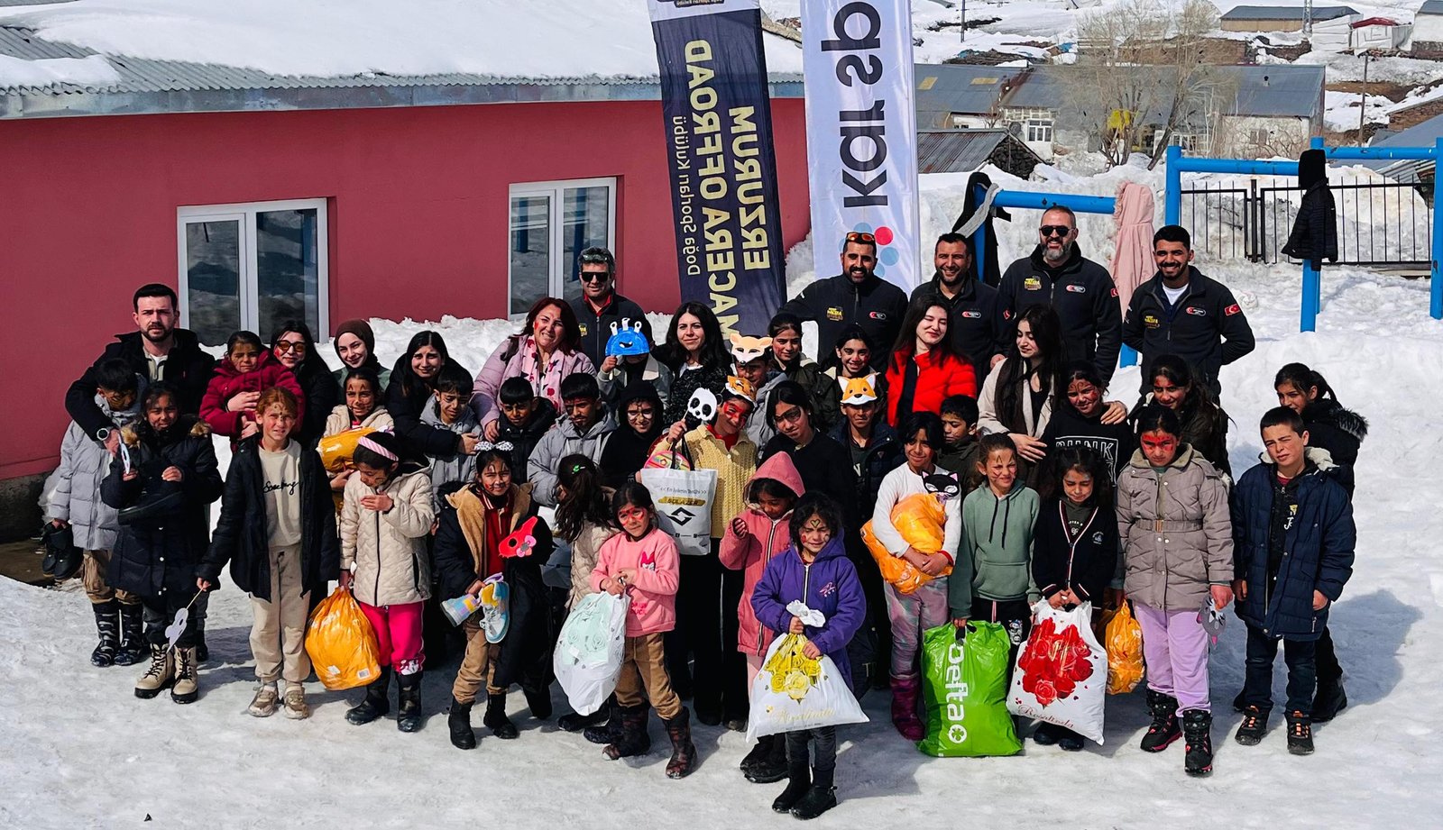 Erzurum Valiliği öncülüğünde yürütülen ‘Minik Eller Üşümesin’ projesi kapsamında Macera Off-Road Doğa Sporları Kulübü üyeleri ile Atatürk Üniversitesi İletişim Fakültesi Halkla İlişkiler Bölümü akademisyen ve öğrencileri, kent merkezine yaklaşık 120 kilometre uzaklıkta ve 2 bin 700 rakımdaki Yuvaklı Mahallesi okulunun öğrencilerine yardım için yola çıktı. Yoğun kar nedeniyle oluşan yaklaşık 3 metre yüksekliğindeki kar tünellerinden geçen ekip, zaman zaman mola vererek bölgeyi görüntüledi.