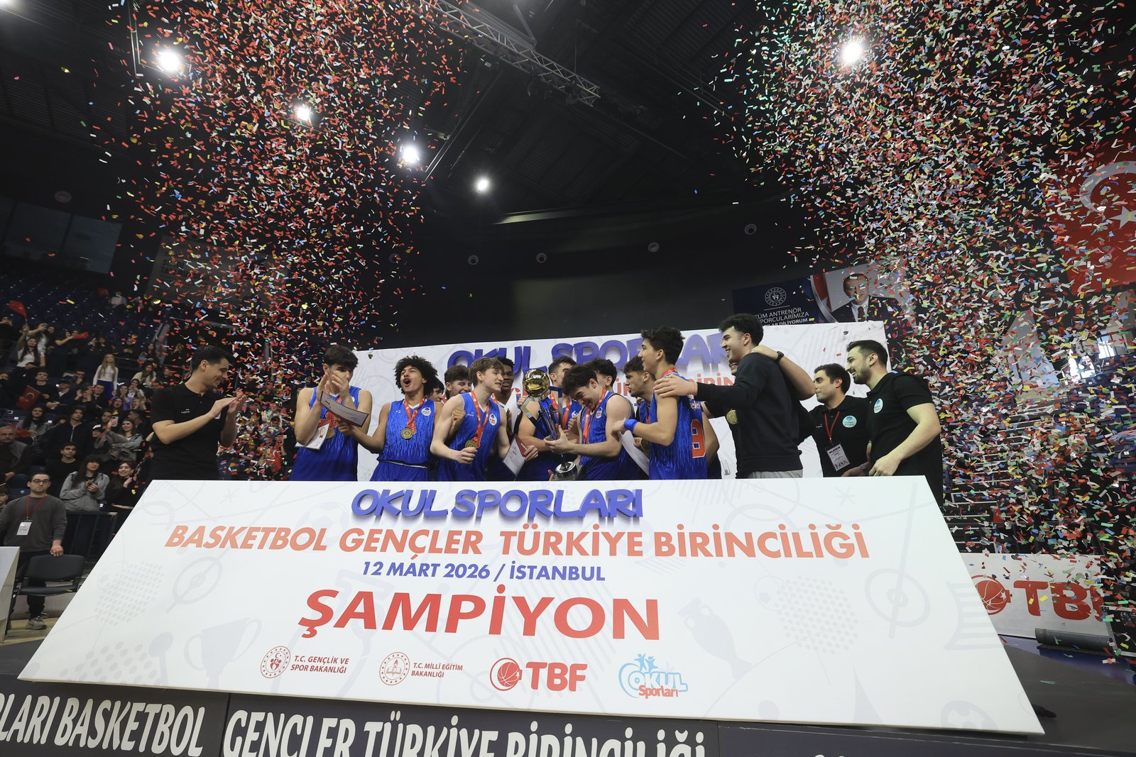 Gençlik ve Spor Bakanlığı Spor Hizmetleri Genel Müdürlüğü Okul Sporları Daire Başkanlığı tarafından düzenlenen Okul Sporları Basketbol Gençler Türkiye Birinciliği Erkekler Final karşılaşması, Başakşehir Spor Kompleksi’nde gerçekleştirildi. Özel Esenkent Okyanus Anadolu Lisesi ile Özel Şişli Bilim Tabiat Anadolu Lisesi’nin karşı karşıya geldiği finali, Gençlik ve Spor Bakanı Dr. Osman Aşkın Bak’ın yanı sıra İstanbul Valisi Davut Gül, İstanbul Vali Yardımcısı Ünal Kılıçarslan, Başakşehir Kaymakamı Cemil Özgür Öneği, Başakşehir Belediye Başkanı Yasin Kartoğlu ile öğrenciler izledi. Büyük heyecana sahne olan erkekler finalinde, İstanbul Özel Şişli Bilim Tabiat Anadolu Lisesi’ni 82-72 mağlup eden İstanbul Özel Esenkent Okyanus Anadolu Lisesi şampiyon oldu.