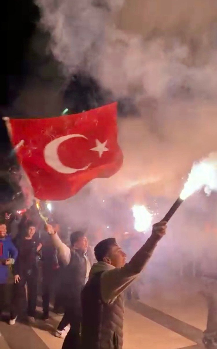 Osmaniye’de vatandaşlar A Milli Futbol Takımı’nın, Kosova ile 2026 Dünya Kupası elemeleri play-off finali karşılaşmasını Devlet Bahçeli Meydanı’nda İl Özel İdaresi tarafından kurulan dev ekranda izledi. A Milli Takım’ın 1-0 galibiyetle ayrıldığı maçın bitiş düdüğünün ardından Osmaniye’de büyük coşku yaşandı. Meşaleler yakıp, Türk bayrakları açan vatandaşlar meydanda uzun süre kutlama yaptı. Kentte çok sayıda araç konvoyu oluşturulurken, galibiyet marşlar ve tezahüratlarla kutlandı. (DHA)