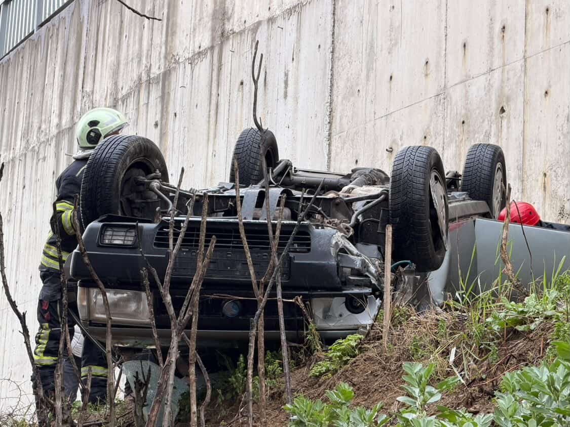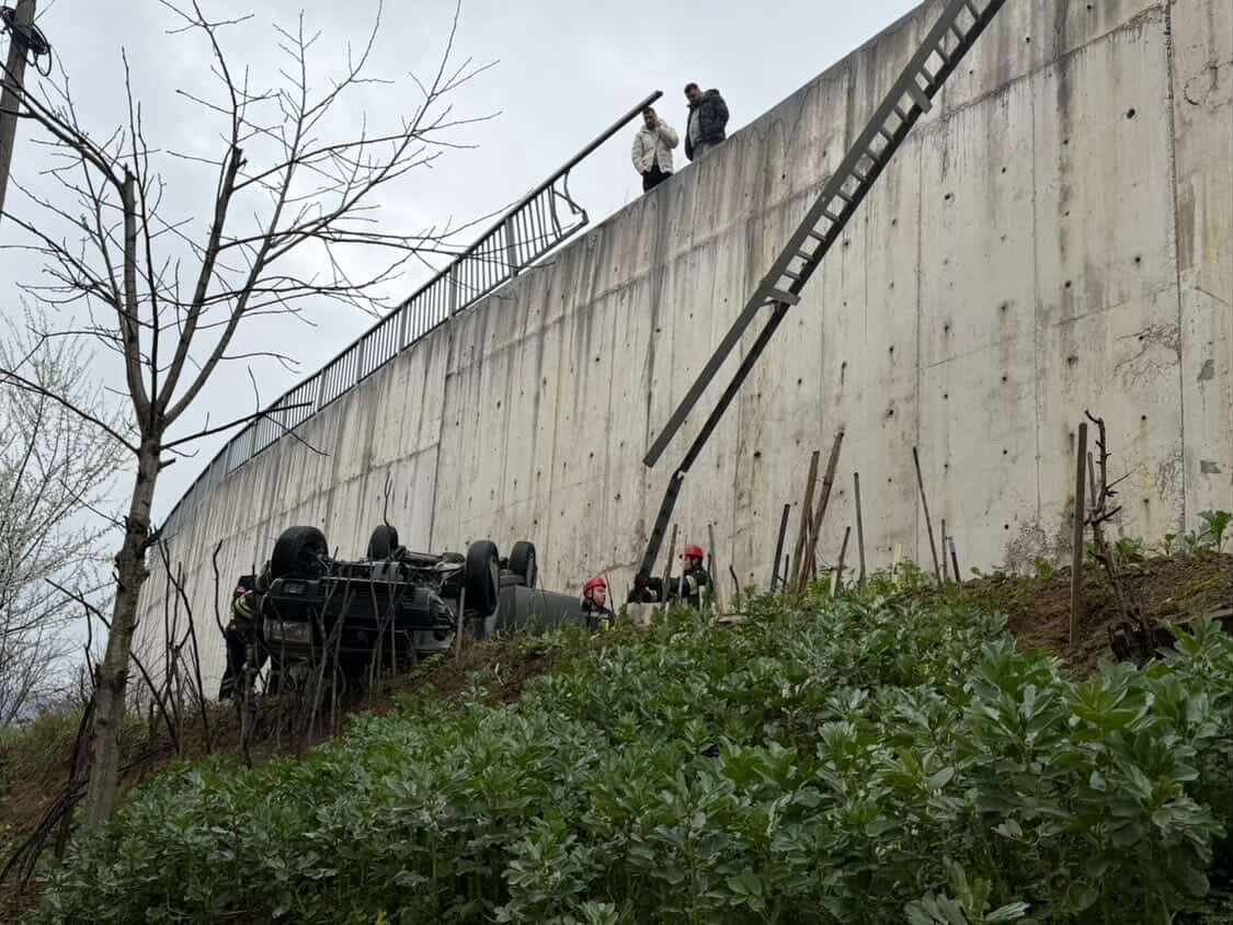 Otomobil, kayganlaşan yolda istinat duvarını aşarak düştü; 1 yaralı