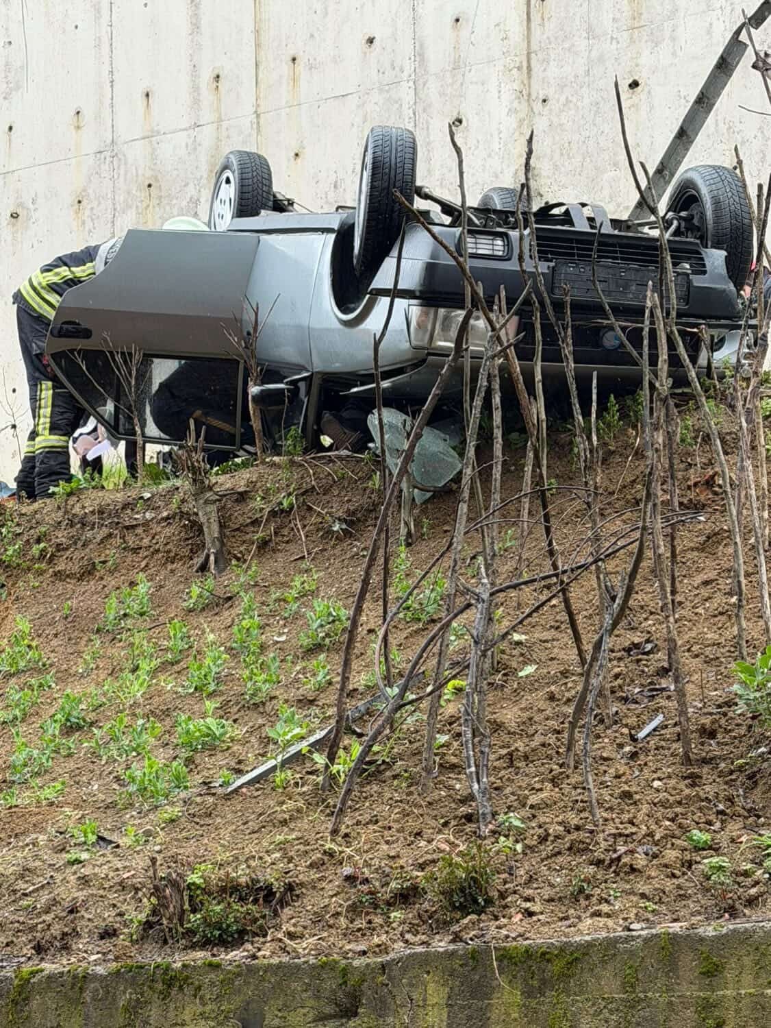 Ayhan ACAR/BARTIN, (DHA)-BARTIN’da otomobil, kayganlaşan yolda istinat duvarını aşarak toprak zemine düştü. Kazada otomobil sürücüsü yaralandı.