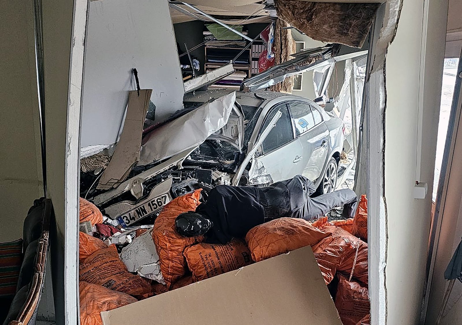 Defne ilçesi Güneysöğüt Mahallesi’nde Antakya-Samandağ yolunda seyir halindeki otomobil, yağış nedeniyle kayganlaşan yolda sürücüsünün direksiyon hakimiyetini kaybetmesi sonucu kontrolden çıkıp, prefabrik çarşıya girdi. Çarşıdaki 3 iş yerinin içinden geçen otomobil, zarara neden oldu. Kaza anları, güvenlik kamerasına yansıdı. Durumu görenlerin ihbarıyla bölgeye jandarma ve sağlık ekipleri sevk edildi. Sağlık görevlileri, ismi açıklanmayan yaralı sürücüyü, olay yerindeki ilk müdahalesinin ardından hastaneye kaldırdı. (DHA)