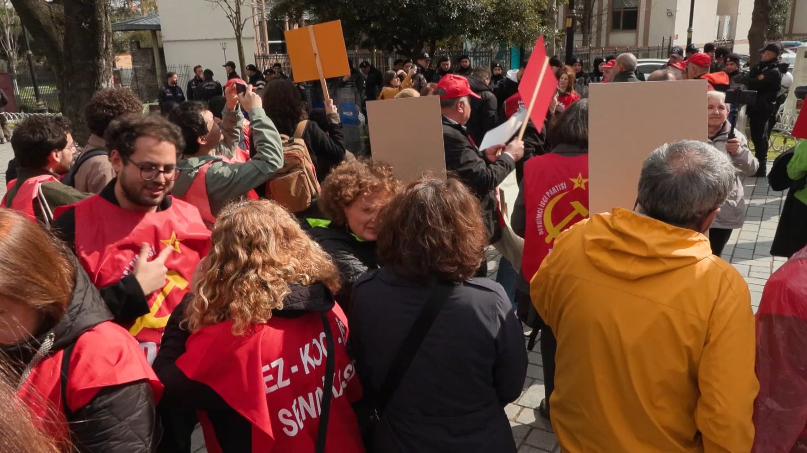 Özel İtalyan Lisesi’nde görev yapan 14 Türk öğretmen iş bırakma eylemi 67’inci gününde sürüyor. İl Milli Eğitim Müdürlüğü’nün önünde gerçekleştirilen eyleme DEM Parti İstanbul Milletvekili Kezban Konukçu, Türkiye İşçi Partisi (TİP) İstanbul Şubeleri, Emekçi Kadınlar Platformu, İşçi Demokrasi Partisi, Vatan Partisi, TÜRK-İŞ İstanbul Bölge Temsilcisi Halil Faki Erdal, Eğitim-Sen İstanbul Şubeleri, Tekgıda-İş Sendikası, Türkiye Sağlık İş Sendikası, Sosyalist Emekçiler Partisi, Cumhuriyet Kadınları Derneği, İşçi Birlikleri Sendikası, Emek Partisi katıldı. Eylemin sonunda öğretmenler İl Milli Eğitim Müdürlüğü’nün önüne kalem bıraktı.
