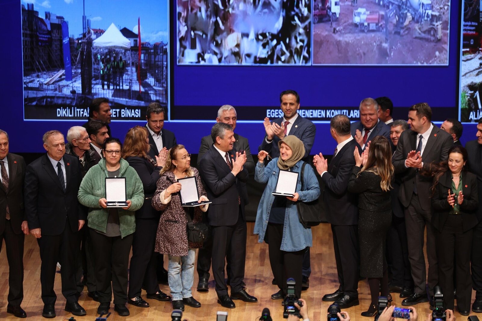 CHP Genel Başkanı Özgür Özel, İzmir programı kapsamında İzmir Büyükşehir Belediyesi’nin toplu açılış törenine katıldı. Ahmed Adnan Saygun Sanat Merkezi’nde düzenlenen programda; Menemen Sosyal Konutlar temel atma ile birlikte Örnekköy Kentsel Dönüşüm Anahtar Teslim töreni de gerçekleştirildi. Projelerin tanıtım filminin izletilmesinin ardından canlı bağlantı eli eş zamanlı temel atma törenine geçildi. CHP Genel Başkanı Özgür Özel, 2 Nisan’ın Dünya Otizm Farkındalık Günü’nü olduğunu hatırlatıp, açılışı yapılacak merkezlerinden birinin Karşıyaka Otizm Merkezi olduğunu söyledi.