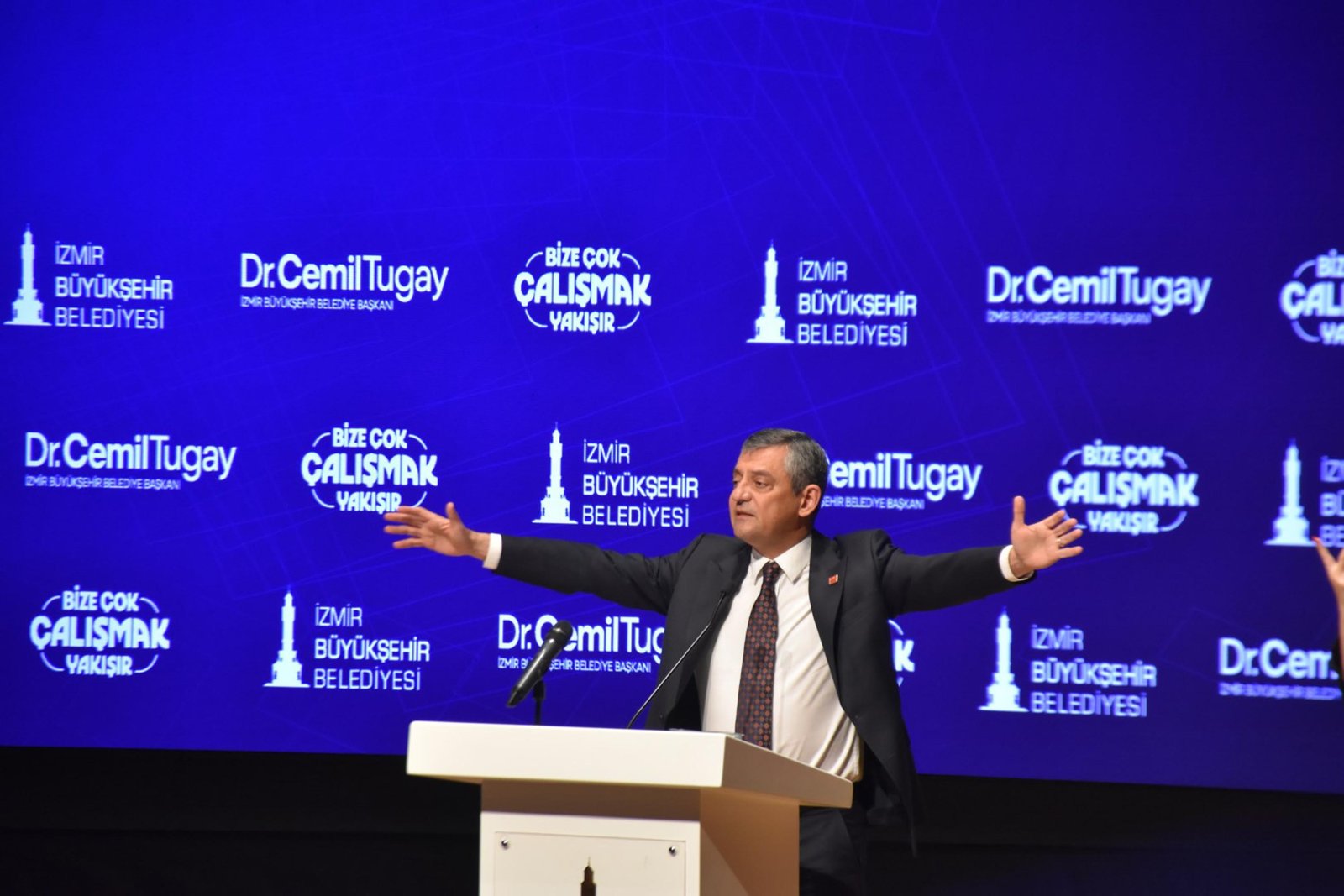 İzmir’de iki yıl boyunca 42,5 milyar liralık yatırım yapıldığını kaydeden Özel, “İzmir’de 42,5 milyar liralık yatırım yapıldı. Buca Metrosu yapımı yüzde 50’yi aştı. 14 ilave istasyonla proje fuara kadar uzatıldı. 22 tramvay alımı başladı. 45 yeni otobüs hattı açıldı. 125 yeni otobüs filoya katıldı. 3 deniz taşıtı filoya katıldı. 90 dakikalık ücretsiz aktarma imkanına geçildi. Gaziemir’deki hava eğitim üst geçidi, Karabağlar’daki dostluk bağlantısı yapıldı. Bayraklı Akın Kıvanç Köprüsü inşa edildi. 600 araçlık yeni bir filoya ilave yapıldı. 13 milyar liralık altyapı yatırımı gerçekleştirildi. İçme suyu, yağmur suyu, atık su hatlarına, görünmeyen yerlere yatırım yapıldı. 156 yeni su kuyusuyla susuzluk sorununa destek sağlandı. İzmar Tanzim Satış mağazalarının sayısında 21’e ulaştık. Gelecek sene 42’ye ulaşacak. İzmir’de 6 milyon litre sütün dağıtıldığını, 12 milyon öğün yemek dağıtıldığını, 51 milyon lira sosyal destek sağlandığını söylüyoruz. Çok daha fazlasını hak eder İzmir. Çünkü beklentinin yüksek olduğu bir şehir” dedi.