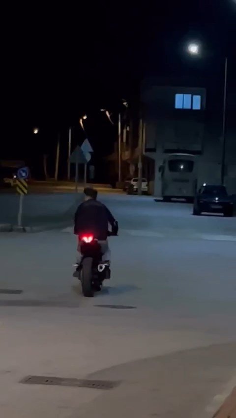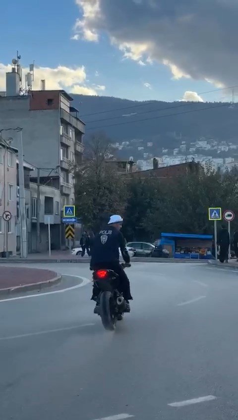 Olay, 30 Mart’ta Osmangazi ilçesi Alemdar Mahallesi’nde meydana geldi. Polis yeleği giyerek plakasız motosikletiyle trafiğe çıkan A.C., drift atıp, tek teker üzerinde ilerledi. Yaptığı tehlikeli hareketleri cep telefonuyla arkadaşına kaydettiren A.C., bu görüntüleri daha sonra sanal medya hesabından paylaştı. Harekete geçen İl Emniyet Müdürlüğü Osmangazi İlçe Emniyet Müdürlüğü’ne bağlı sivil trafik ekipleri, A.C.’yi 1 Nisan’da yakaladı. A.C.’ye, ‘Trafiği tehlikeye düşürmek’, ‘Plakasız araç kullanmak’, ‘Kask takmamak’ ve ‘Drift atmak’ gibi çeşitli maddelerden toplam 365 bin lira idari para cezası uygulandı. Motosiklet de 30 gün süreyle trafikten menedilerek otoparka çekildi. (DHA)