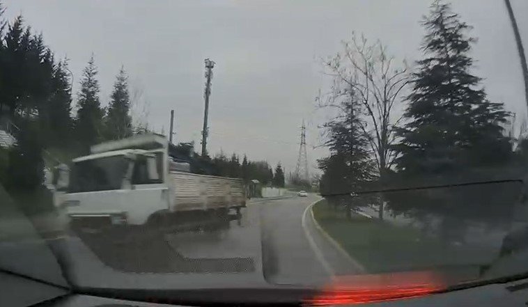 Ardacan UZUN/İZMİT, (Kocaeli), (DHA)- KOCAELİ’nin İzmit ilçesinde rampada geri kayan kamyonun refüje çıkarak devrildiği kaza, bir diğer aracın kamerasına yansıdı.