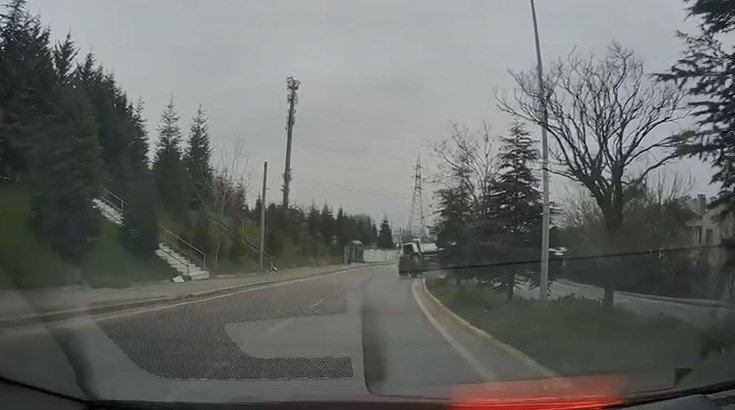 Öte yandan, kaza anı öbür bir aracın yol kamerasına yansıdı. İmajda; şoför kabinindeki kapısı açık olduğu görülen kamyonun geri kaydığı ve refüje çıkıp devrildiği anlar yer aldı. Kazaya ait inceleme başlatıldı. (DHA)