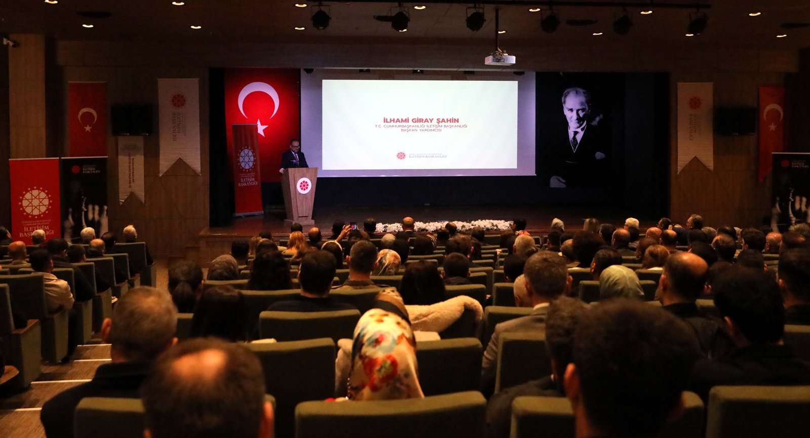 Programda konuşan İlhami Giray Şahin, eğitimin 4 oturumdan oluştuğunu ve verilen eğitimlerle kamu kurumları ile vatandaş arasında iletişimin güçleneceğine dikkat çekti. Şahin hazırlanan eğitim programları ile kurumlar arası iş ve söylem birliğinin gerçekleştirileceğini ifade ederek, kamu kurumlarının vatandaşın devlete açılan kapısı olduğunu kaydetti. Şahin, “Cumhurbaşkanlığı İletişim Başkanlığı olarak bizler, yalnızca bilgi aktaran bir kurum değil, aynı zamanda Cumhurbaşkanımızın ve devletimizin hakikati koruma misyonunda öncülük yapıyoruz. Millet-devlet iletişimini sağlayarak vatandaşımızın devlete açılan kapısı olmaya devam ediyoruz. Kapsamlı şekilde hazırladığımız eğitim programı çerçevesinde, kurumsal kapasitemizi en üst seviyeye çıkaracak başlıkları masaya yatırırken aynı zamanda kurumlar arası iş ve söylem birliği hususlarına da vurguda bulunacağız” dedi.