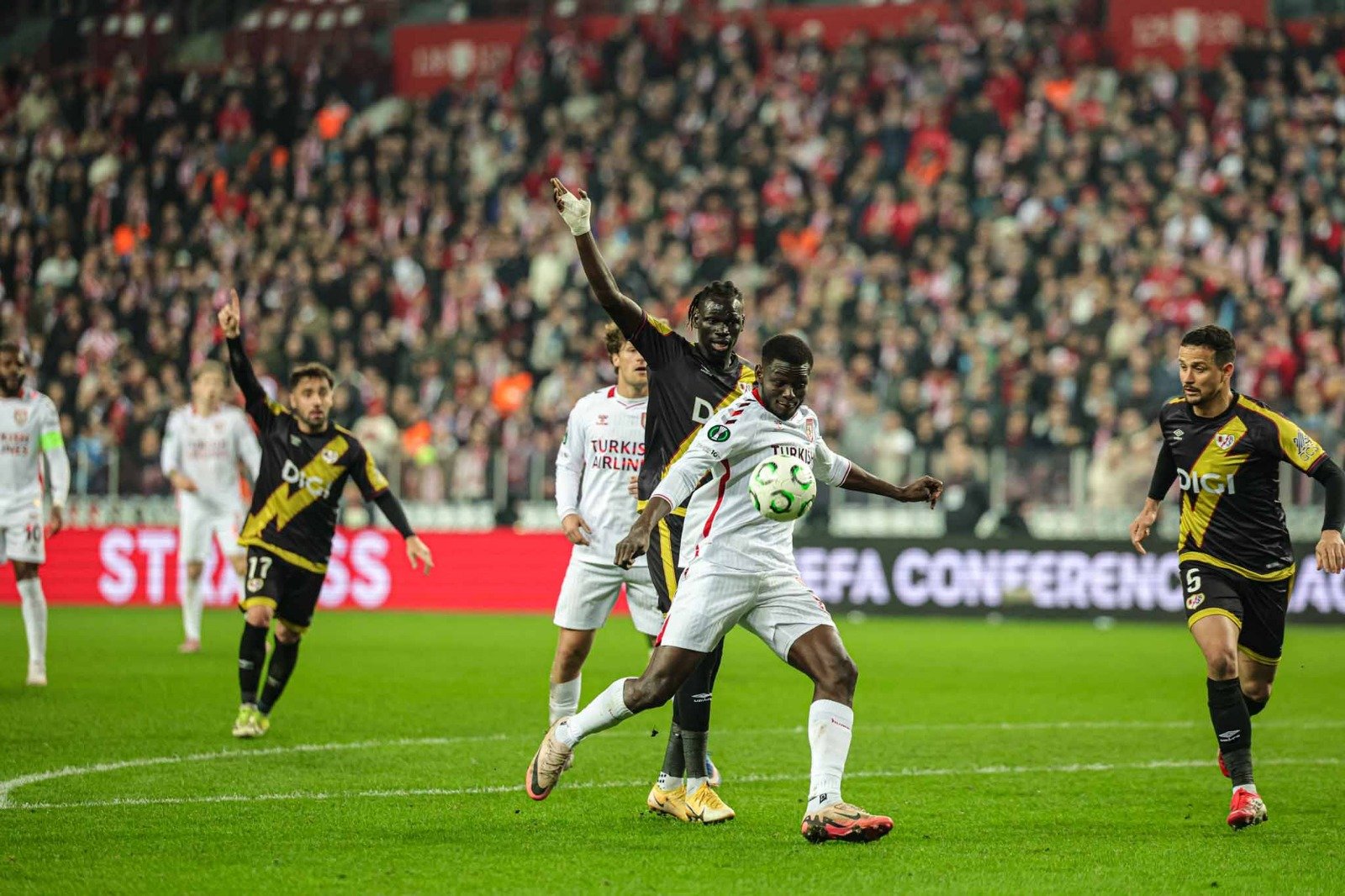 SARI KARTLAR: Holse, Celil Yüksel, Ntcham, Mendes (Samsunspor) – Luiz Felipe, Akhomach (Rayo Vallecano)