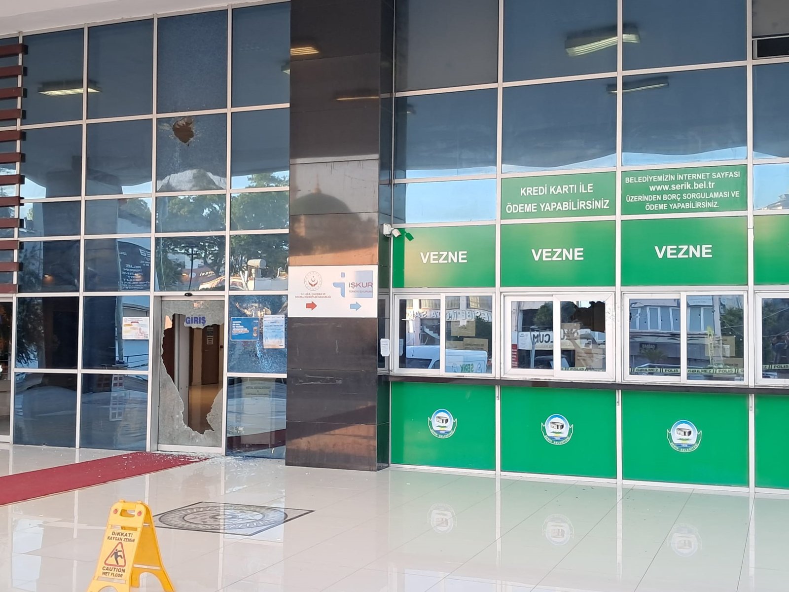 Olay, saat 06.00 sıralarında Serik Belediye binası önünde meydana geldi. Ş.D., motosikletiyle önüne geldiği belediye binasına, yanında bulunan av tüfeğiyle 4 el ateş etti. Binanın giriş kapısı, vezne bölümü ile başkanlık katındaki penceresine saçmalar isabet etti. Belediye binasında nöbet tutan 2 zabıta memuru olaydan yara almadan kurtuldu. Şüpheli, saldırının ardından motosikletini olay yerinde bırakarak kaçtı.