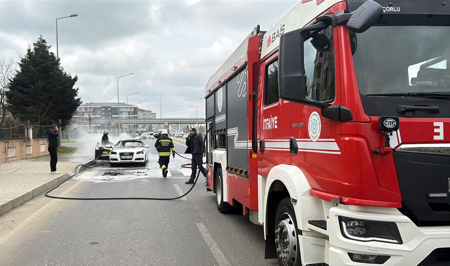 Mehmetcan ARSLAN/ÇORLU (Tekirdağ), (DHA)-TEKİRDAĞ’ın Çorlu ilçesinde seyir sırasında alev alan