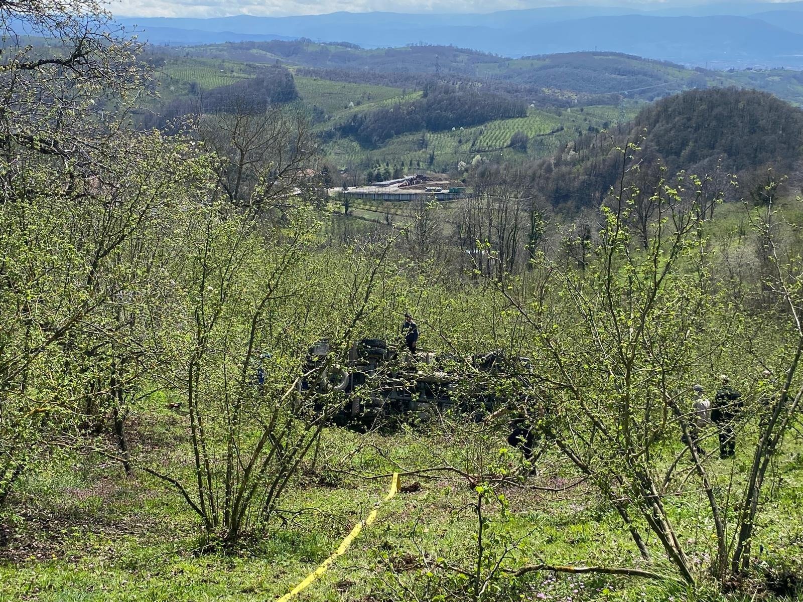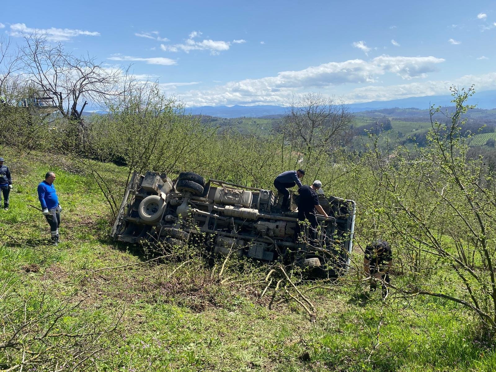 Musa KESKİN/DÜZCE, (DHA)- DÜZCE’de, direksiyon başında kalp krizi geçiren Murat Ö.’nün kullandığı sepetli vinç kamyoneti fındık bahçesine devrildi. Kazada, Murat Ö. yaralandı.
