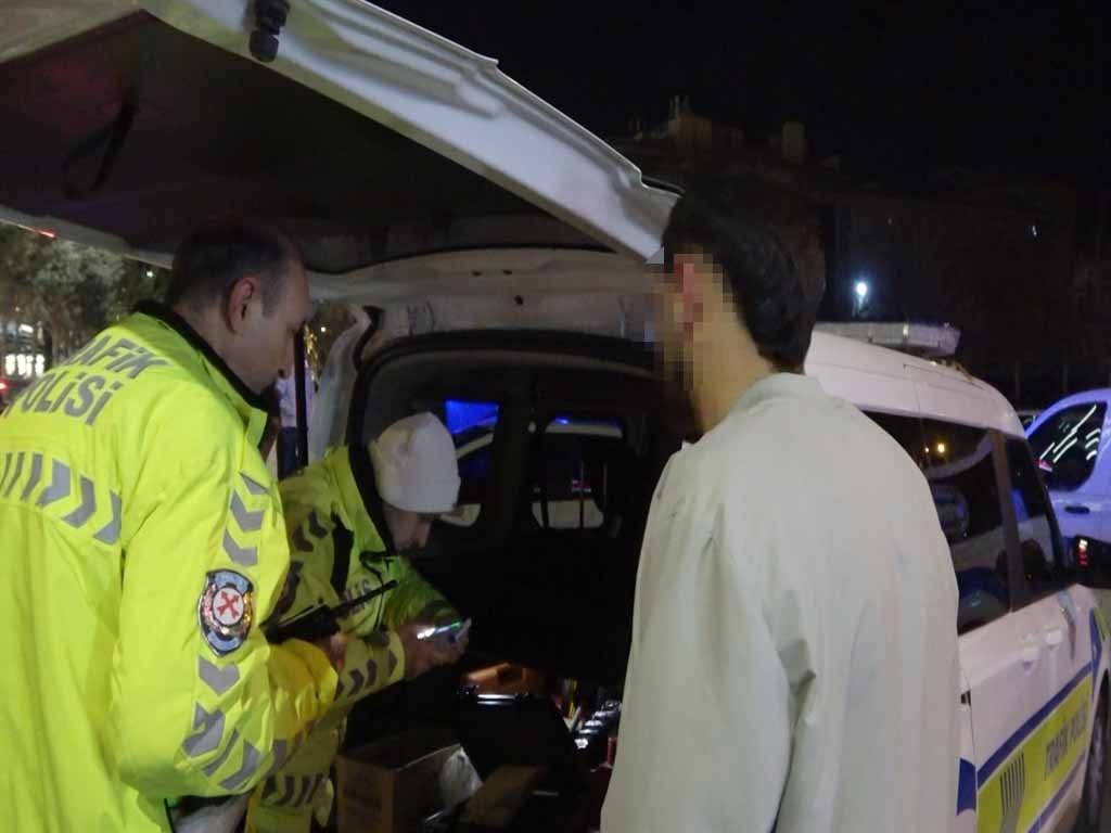 Aksaray İl Emniyet Müdürlüğü ekipleri, Taşpazar Mahallesi’nde trafik ve asayiş denetimi gerçekleştirdi. Denetimde, Alican A.’nın kullandığı 06 BMP 903 plakalı otomobilde durduruldu. Alican A.’nın 0,34 promil alkollü olduğu belirlendi. Stajyer ehliyeti olduğu belirlenen Alican A.’nın, aday sürücüler için 0,20 promil olan alkol üst limitini aştığı tespit edildi. Alican A.’nın ehliyetine el konuldu. Ancak Alican A., polisten ehliyetine el konulmaması, başka bir suçtan idari ceza yazılmasını istedi. Alican A.’nın talebi uygulanmazken, otomobil ehliyetli başka bir arkadaşına teslim edildi. (DHA)