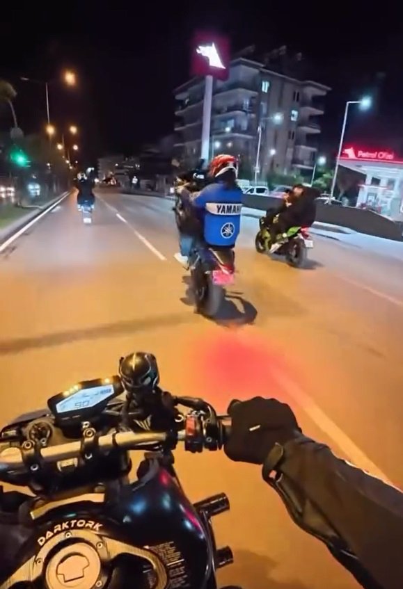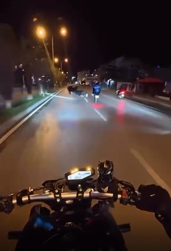 Kaza, dün saat 22.30 sıralarında Tosmur Mahallesi’nde meydana geldi. Motosikletinin ön tekerini kaldırarak yolda ilerleyen adı öğrenilemeyen sürücü, dengesini kaybedip düştü. Bu sırada yine tek teker üzerinde giden başka bir motosiklet de kaza yapan motosiklete çarptı. Kaza anları, başka bir motosiklet sürücüsünün kask kamerasına yansıdı. Çevredekilerin ihbarı üzerine kaza yerine sağlık ve polis ekibi sevk edildi. Yaralanan iki sürücü, ambulans ile Alanya Eğitim ve Araştırma Hastanesi’ne kaldırıldı. (DHA)