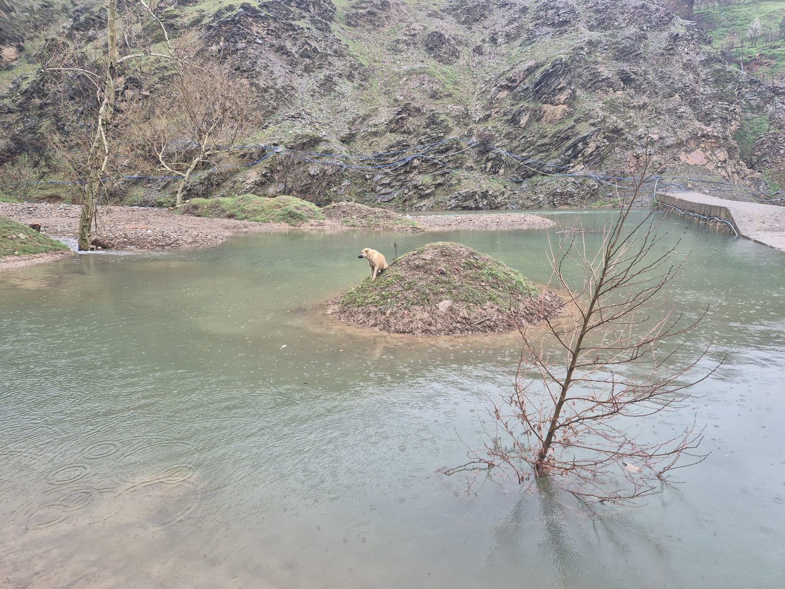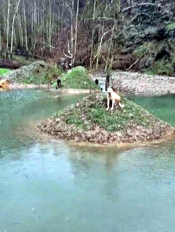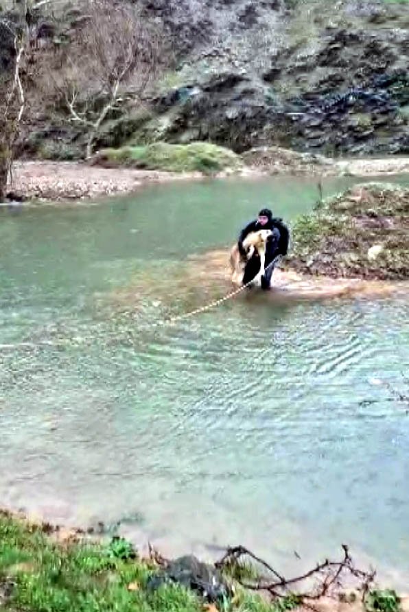 Ömer KOÇ/KAHRAMANMARAŞ, (DHA)- KAHRAMANMARAŞ’ta suyla çevrili bölgede mahsur kalan köpeği, itfaiye eri kurtardı.