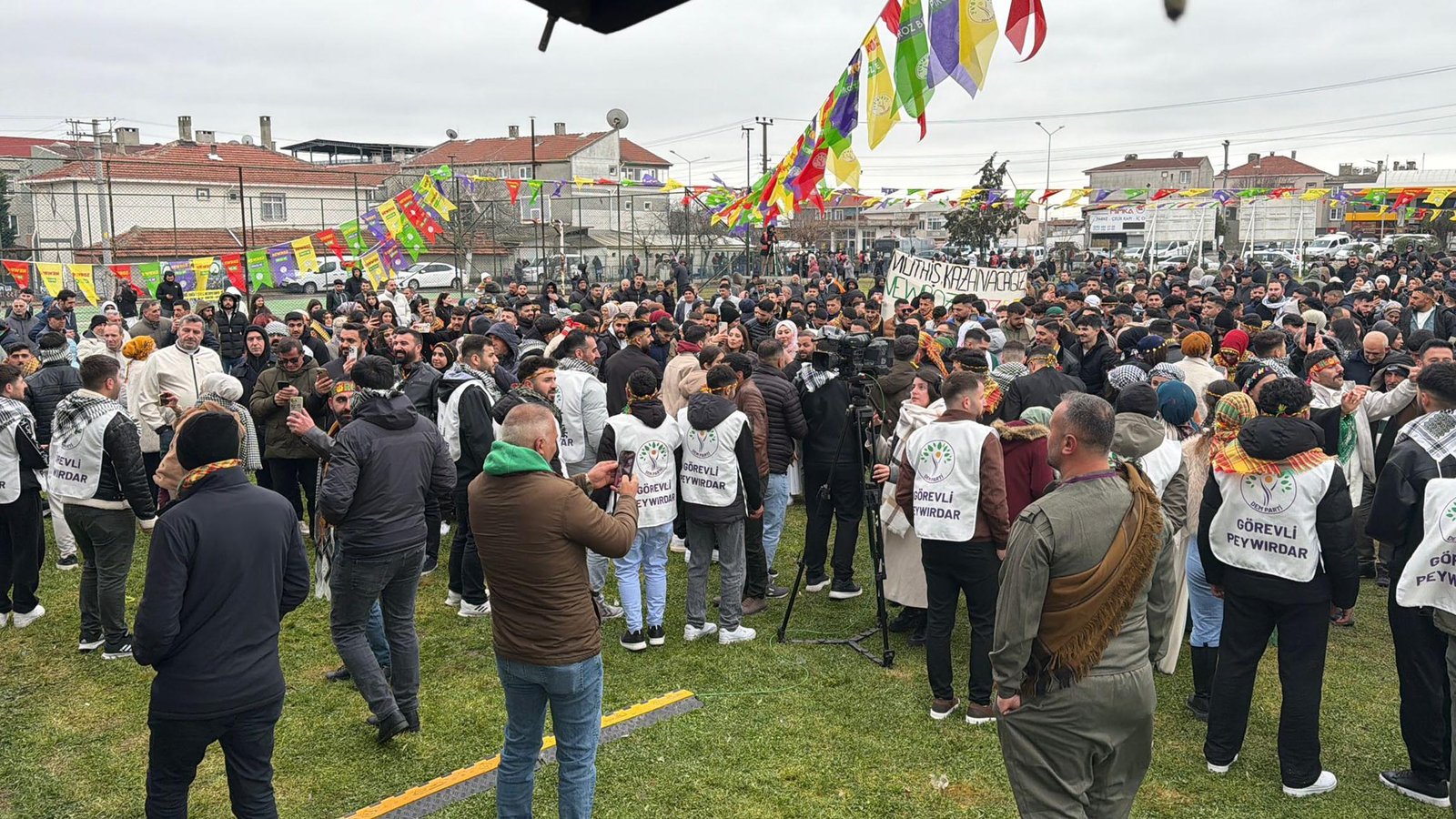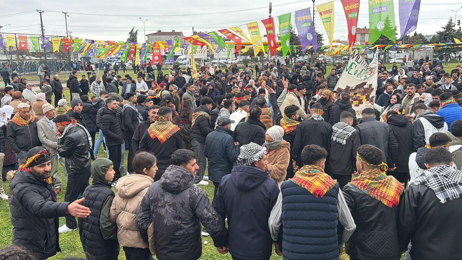 Mehmet YİRUN/TEKİRDAĞ, (DHA)- TEKİRDAĞ’da DEM Parti İl Başkanlığı tarafından düzenlenen nevruz kutlamasında Ergene ilçesinde halaylar çekildi.