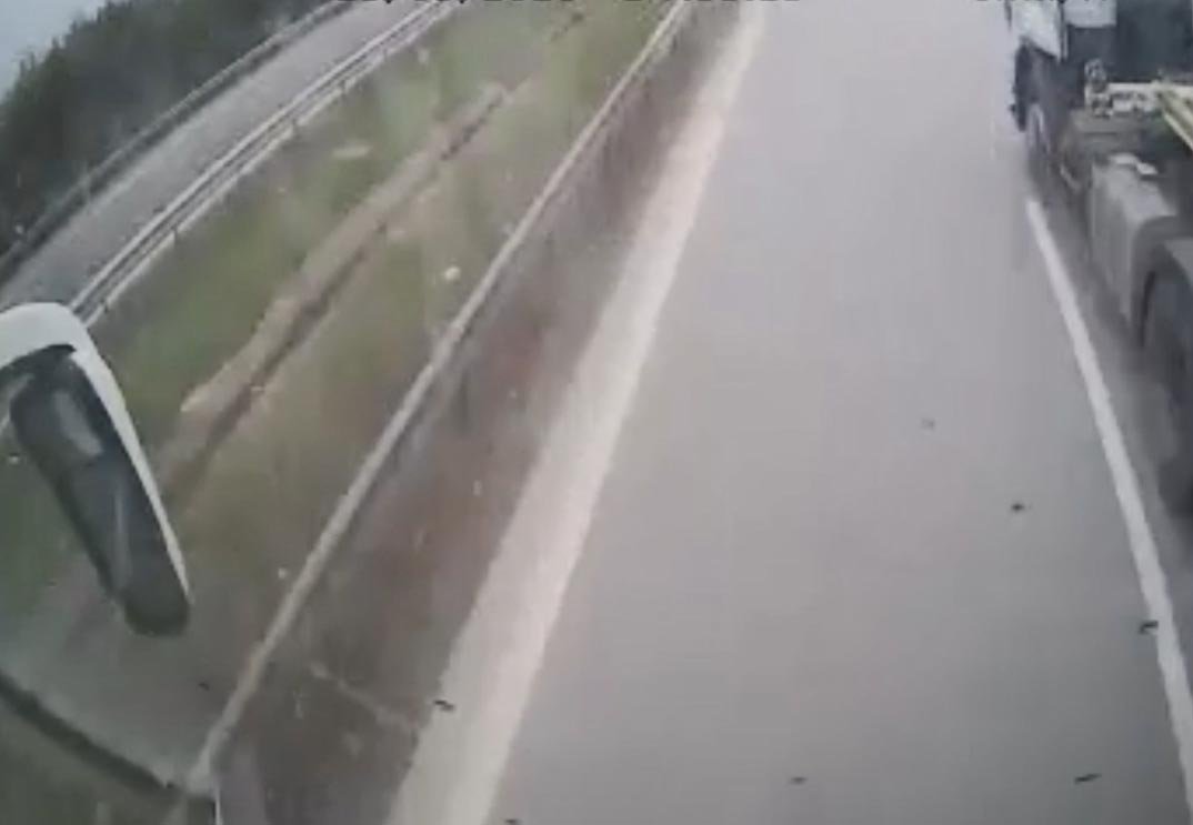 Yolcu otobüsünün şoförü Aşkın Lütfi Yeni, “En sağ şeritten geldi. Ne kadar kornaya da bassam bariyere çıkacaktım geldi vurdu. Biz de mecbur kaldık bariyerlere çıktık” dedi.