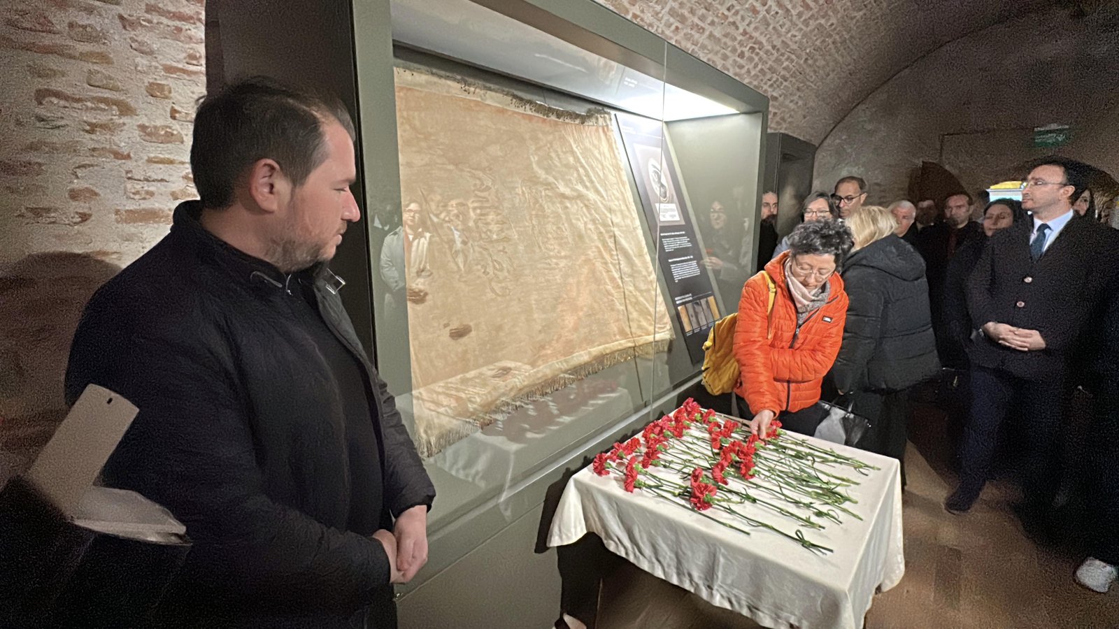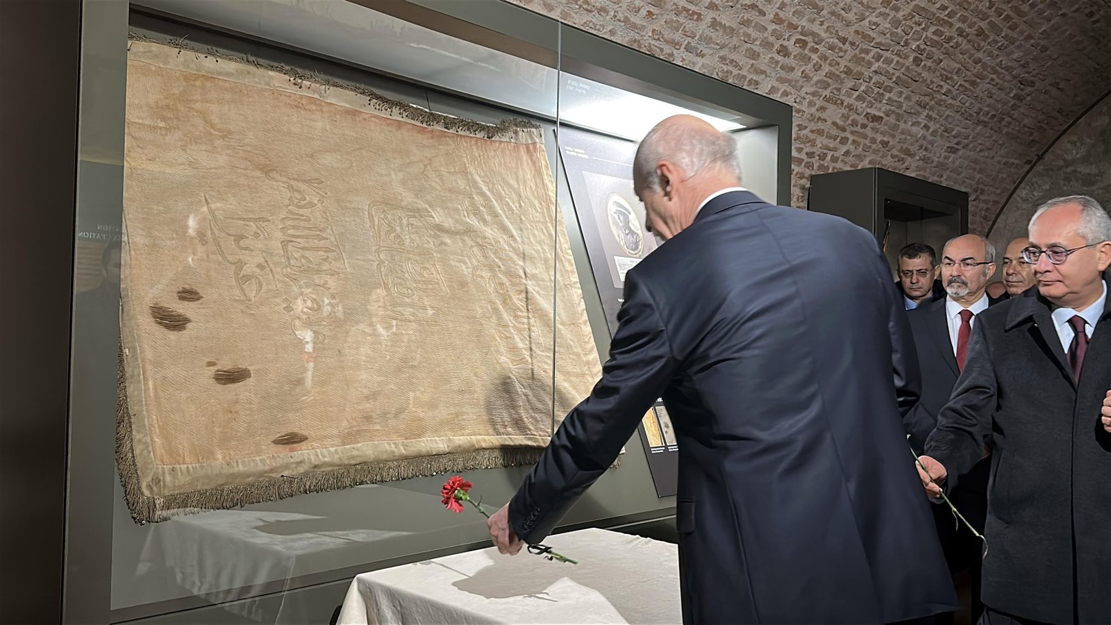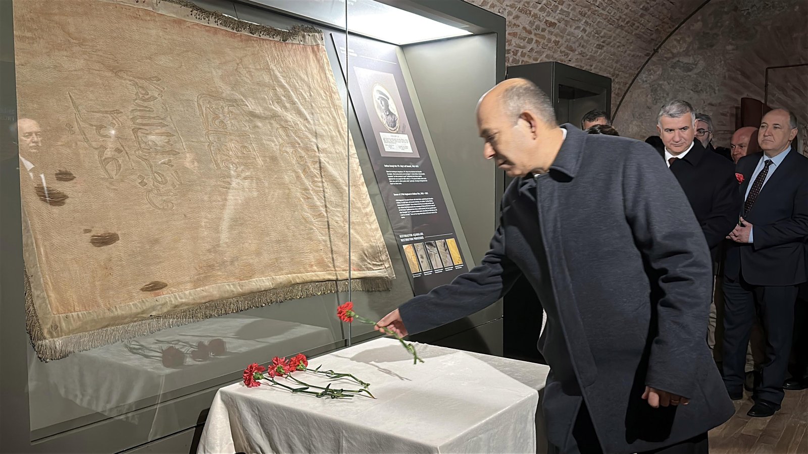 Toplantının ardından, TÜ Rektörü Prof. Dr. Mustafa Hatipler ve senato üyeleri, müzede sergilenen kanlı sancağa karanfil bırakarak şehitleri andı. (DHA)
