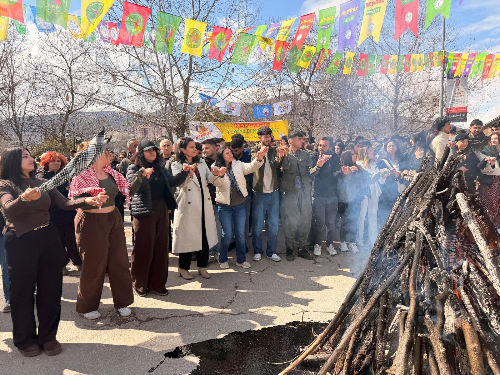 Emek ve Demokrasi Platformu tarafından organize edilen Nevruz programı, Sanat Sokağı’nda toplanan kalabalığın halaylar çekmesiyle başladı. Burada bir araya gelen kalabalık, daha sonra kutlamaların yapılacağı Seyit Rıza Meydanı’na yürüdü. Yürüyüş boyunca sık sık sloganlar atıldı. Etkinliğe katılanlar, oluşturulan iki ayrı arama noktasından geçerek alana alındı. Programa DEM Parti Grup Başkanvekili ve Kars Milletvekili Gülistan Kılıç Koçyiğit, Tunceli Milletvekili Ayten Kordu, İzmir Milletvekili Burcugül Çubuk, Emek Partisi Genel Başkan Yardımcısı ve İstanbul Milletvekili İskender Bayhan, görevden uzaklaştırılan Tunceli Belediyesi Eş Başkanları Birsen Orhan ile Cevdet Konak ile partililer katıldı. Nevruz ateşinin yakılmasının ardından sanatçıların seslendirdiği türkülerle halaylar çekildi.