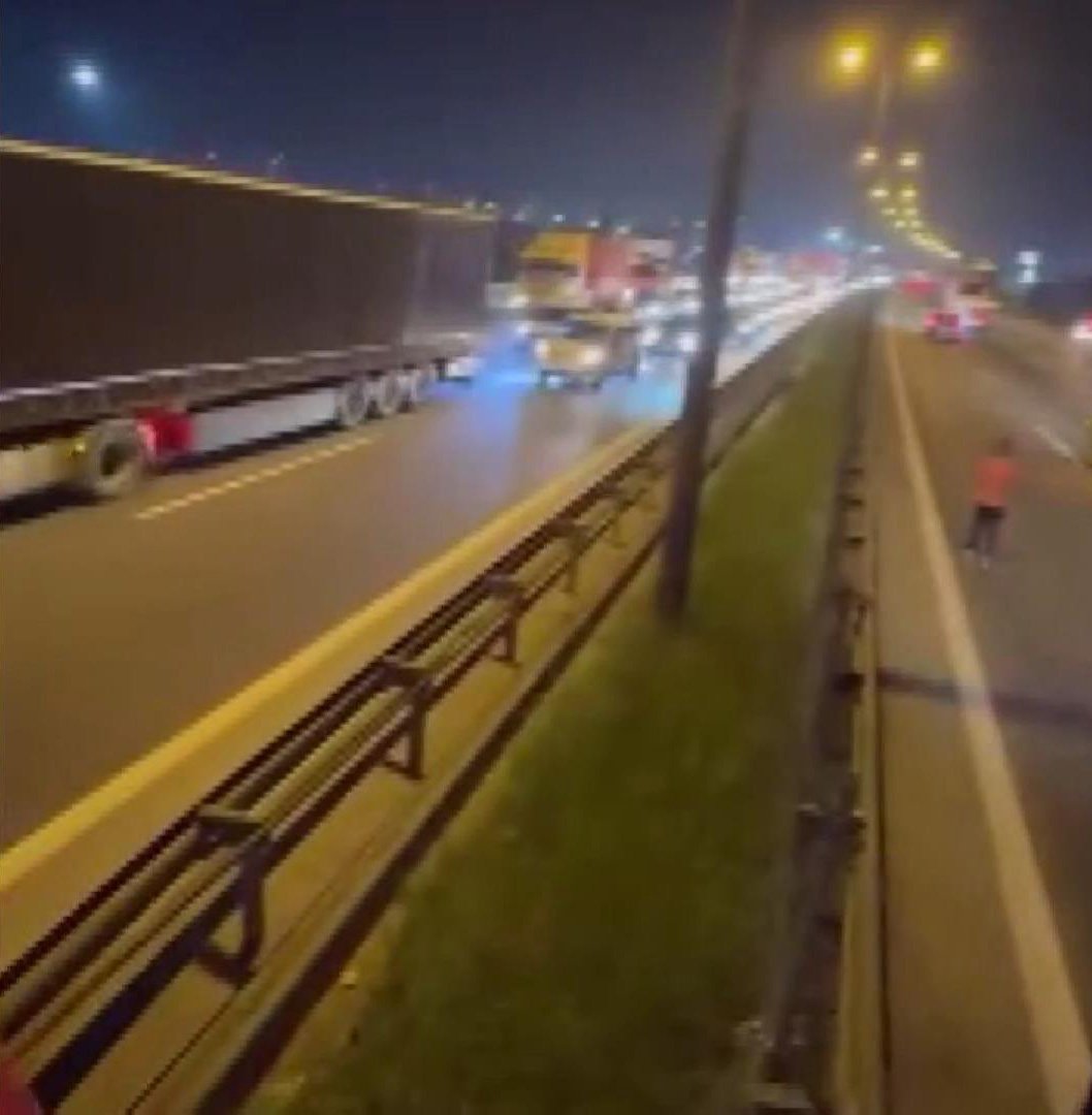 İSTANBUL, (DHA)- TUZLA, TEM Otoyolu’nda bariyerlere çarpan TIR devrildi. Kazanın ardından TEM’de trafik yoğunluğu oluşurken, TIR şoförü çevredekilerin yardım çağrılarına rağmen uzun süre kabinde cep telefonunu aradı.