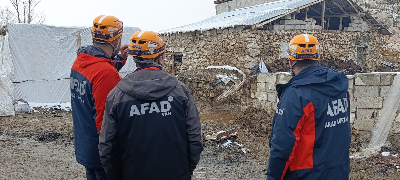 Van’ın Tuşba ilçesinde meydana gelen 5.2 büyüklüğündeki depremin ardından AFAD ekipleri saha taramalarını sürdürüyor. Tuşba ilçesine bağlı Ermişler Mahallesi’nde bir ahırın çöktüğü ihbarını alan ekipler yola çıktı. Ermişler Mahallesi’ne ulaşan ekipler saha taraması yaptı. AFAD ekipleri kısmen çöken ahırın çevresinde güvenlik önlemi aldı. Ahırda yaralanan bir kuzunun bakımı ise vatandaşlar tarafından yapıldı. Ekiplerin saha taraması devam ediyor. (DHA)
