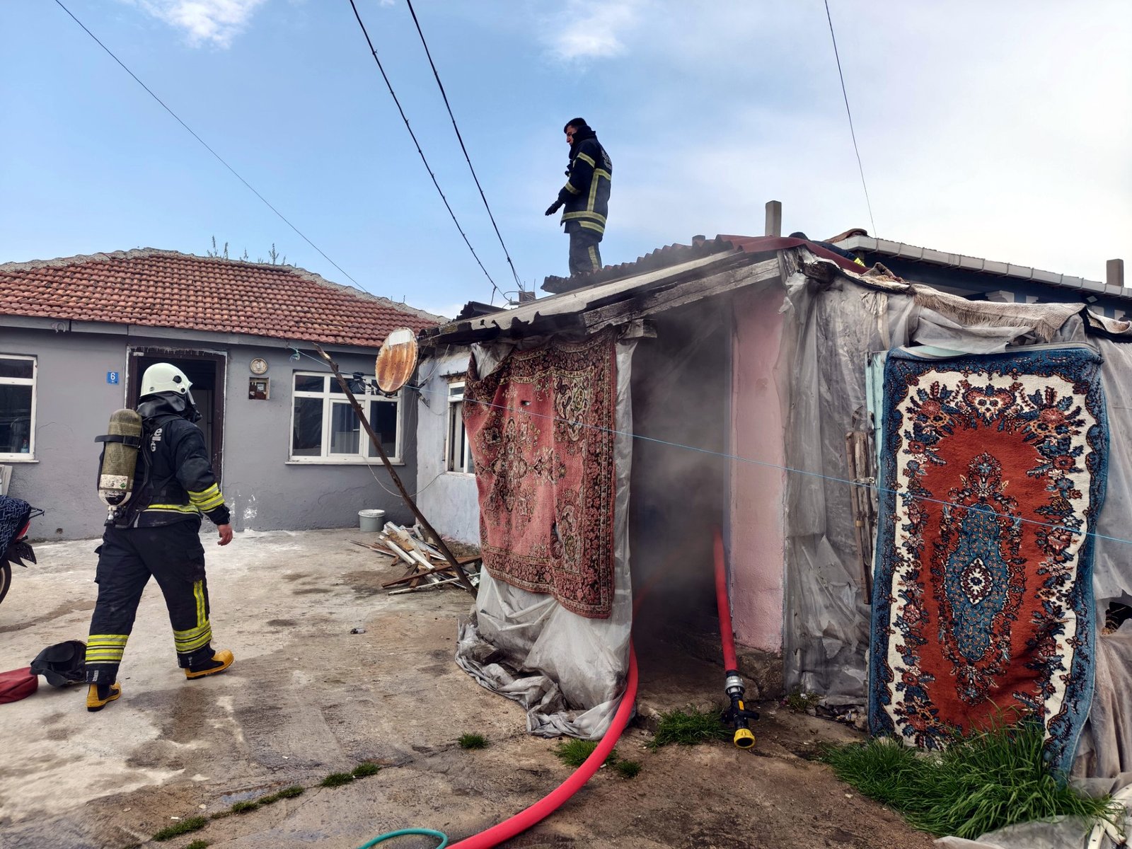 Ayaspaşa Mahallesi Nehir Sokak’ta yalnız yaşayan Münire İrşi’nin evinde, öğle saatlerinde sobadaki kıvılcımdan kaynaklı yangın çıktı. Alevlerin yayılmasıyla evden duman yükselmeye başlarken, komşuların ihbarıyla bölgeye polis, itfaiye ve sağlık ekipleri sevk edildi. İrşi, bu sırada komşuları tarafından evden çıkarıldı. İtfaiyenin müdahalesiyle yangın söndürülürken, büyük üzüntü yaşayan Münire İrşi’yi komşuları teselli etti. Tek katlı ev kullanılmaz hale gelirken, yangınla ilgili inceleme başlatıldı. (DHA)