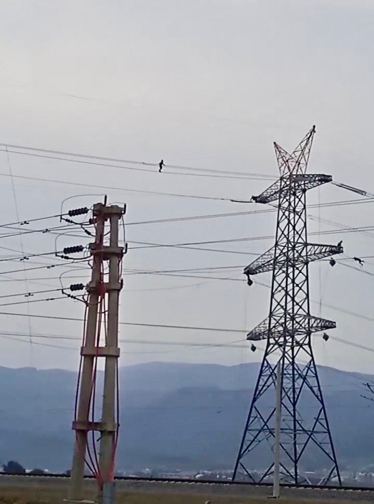İbrahim EMÜL/OSMANİYE, (DHA)- OSMANİYE’de 2 işçi, metrelerce yükseklikte yüksek gerilim hattında bakım ve onarım çalışması yaparken cep telefonuyla görüntülendi. İşçiler, ip cambazlarını andırdı.